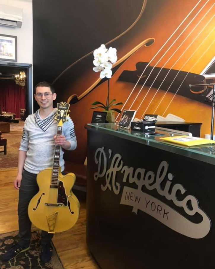 At the D'angelico Showroom in New York City with an EXL-1 electric archtop